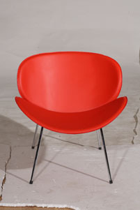 Silla con armazón cromado, asiento y respaldo en polipiel.